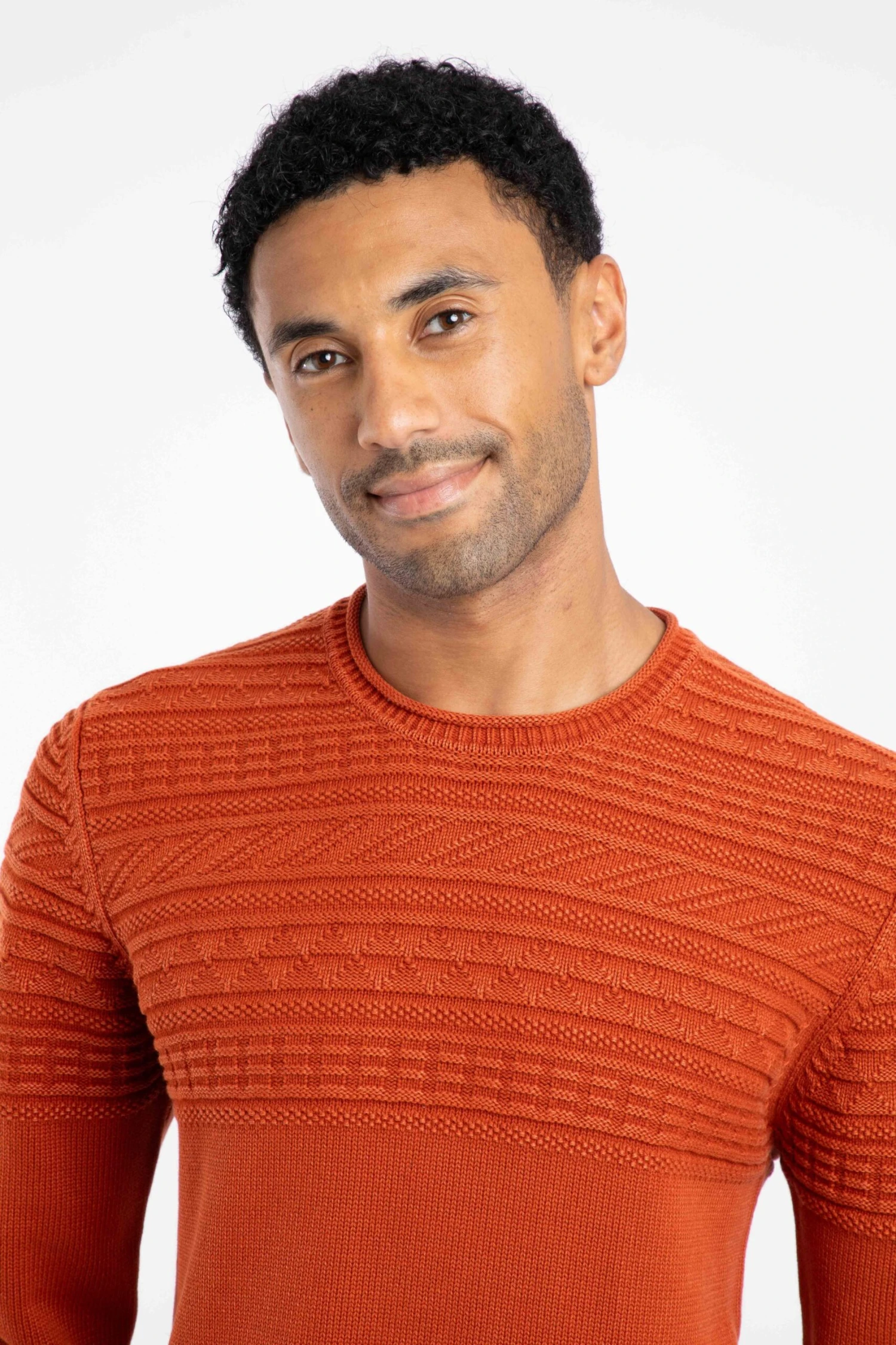 We love the Fahri Mixed Stitch Crew Neck Jumper; it has a 90s retro feel with its subtle two-tone yarn, giving it a washed-out, lived-in look. The rolled collar and stitching details across the shoulders also give this comfy jumper a casual look and feel.