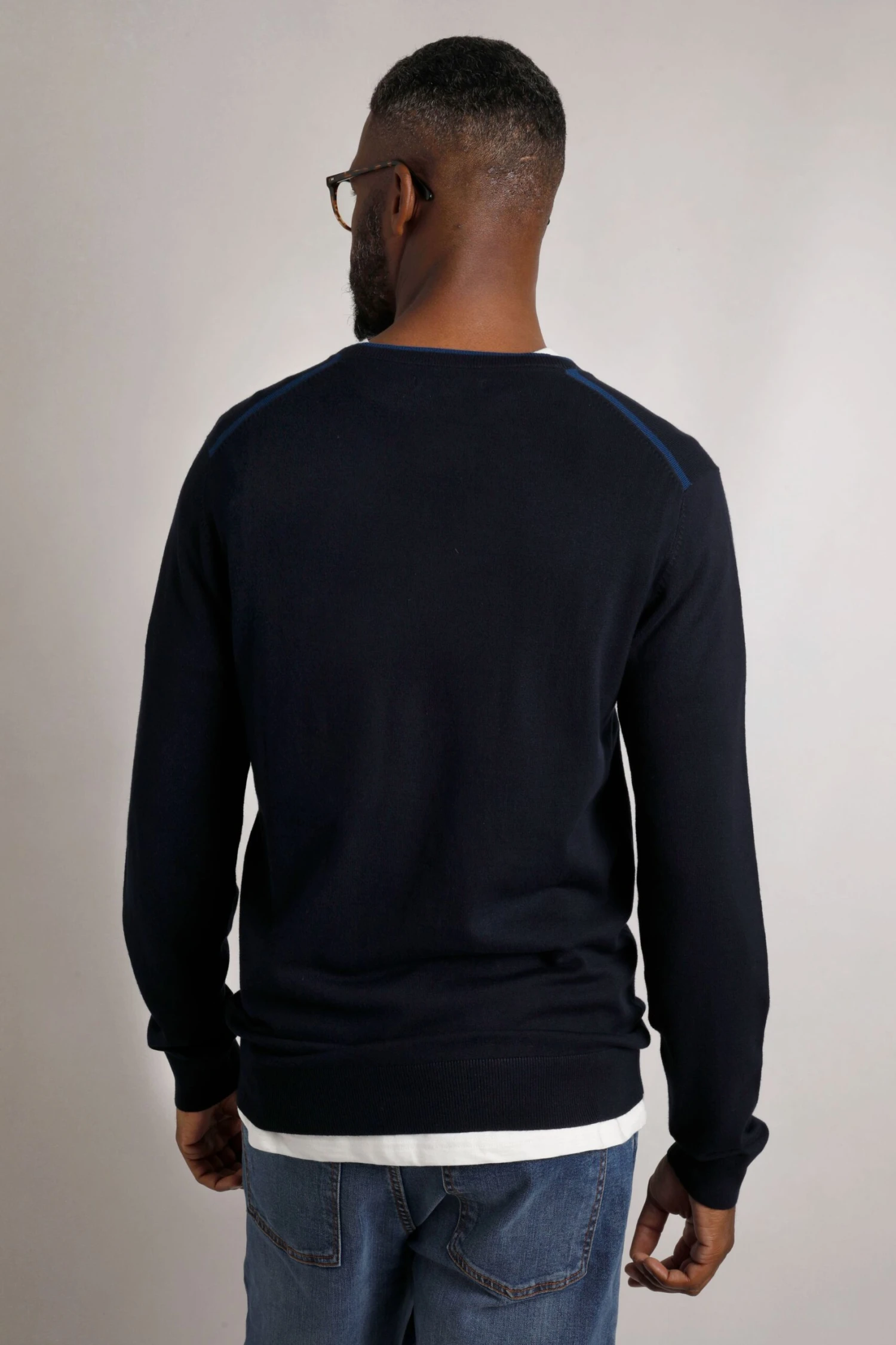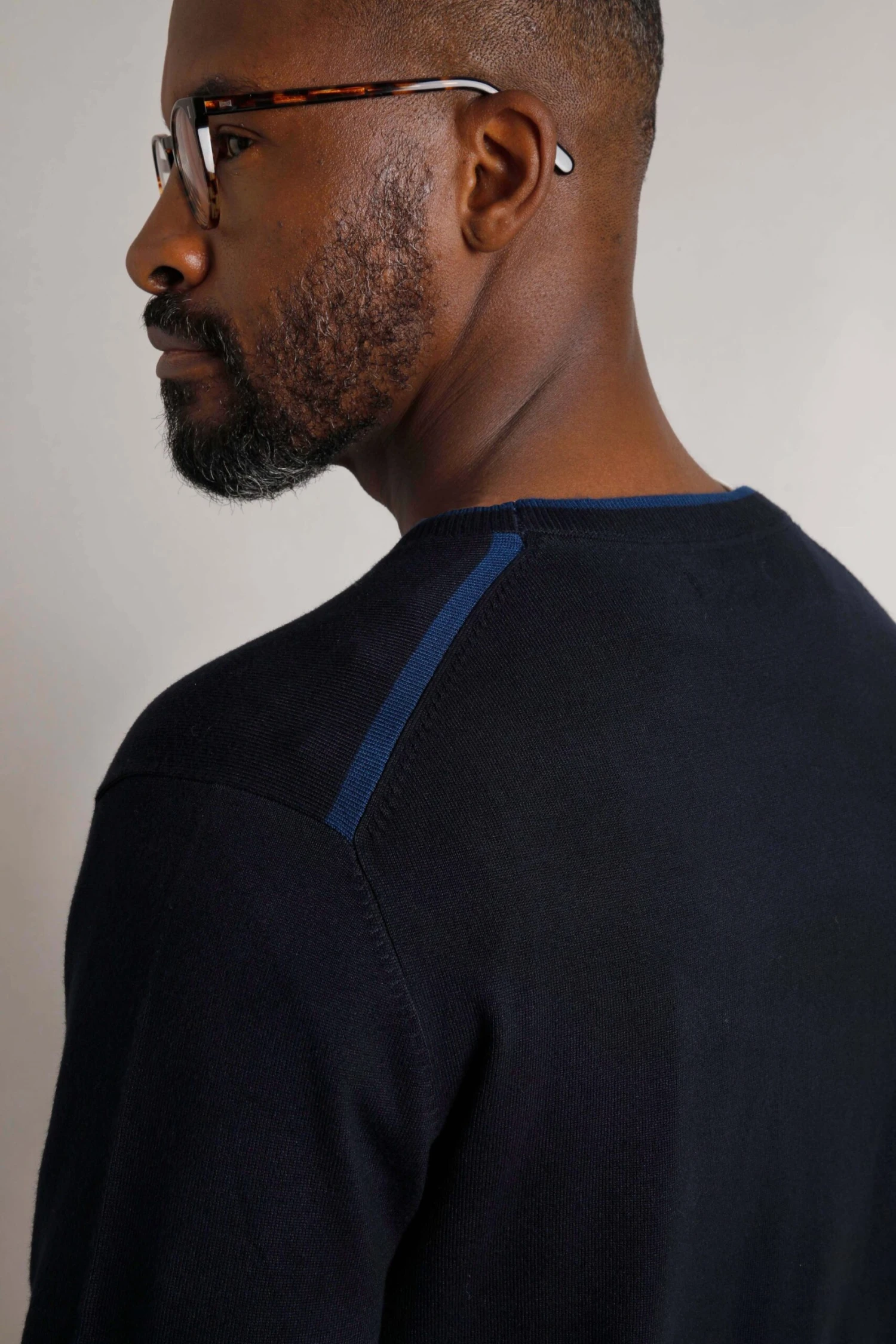Need a smart bit of knitwear? Try our new Noah Crew Neck Fine Knit Jumper. The fine gauge knit gives a sophisticated look to this slim line jumper. Tipped on the neckline with a tonal colour, and finished with subtle, metal branding.