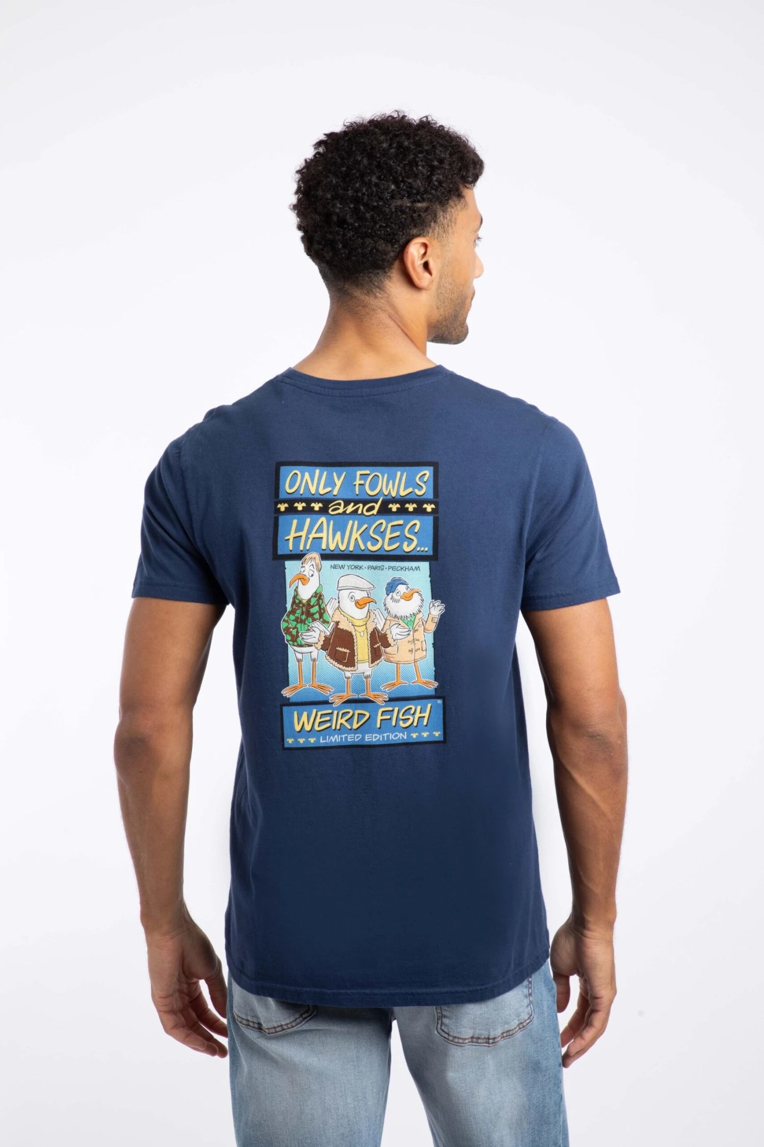 Not available out of a suitcase on a market in Peckham, but available from Weird Fish, we bring you the Only Fowls and Hawkses Back Print Artist T-Shirt. Featuring your favourite characters, but with a Weird Fish twist.