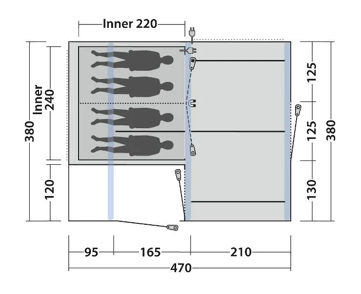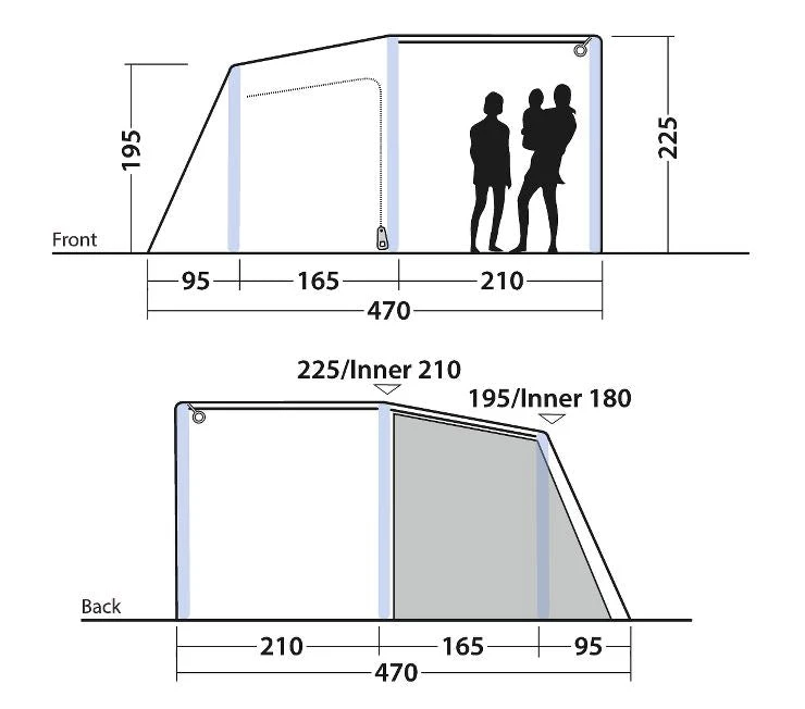 - Reliable, easy-to-operate inflate/deflate valves conveniently placed outside the flysheet