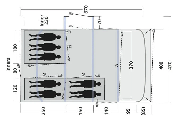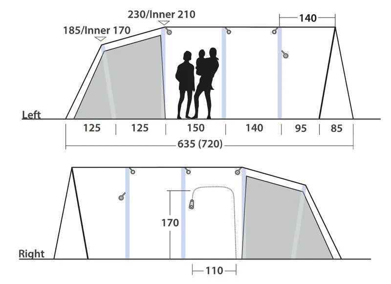 The Outwell Vermont 7 Air tent is notable for its spacious and modern design. With the option to enter through the front, side, or rear doors, and the ability to store the two-person inner tent to create more space, this tent provides convenience and comfort. The large windows allow for natural light, while the side porch offers protected entry to the tent. Enjoy ample headroom and floor space in this expansive tent, ideal for relaxation and quality time.