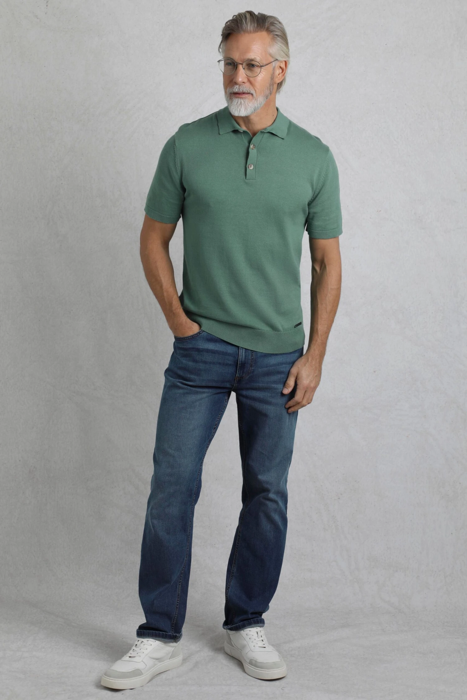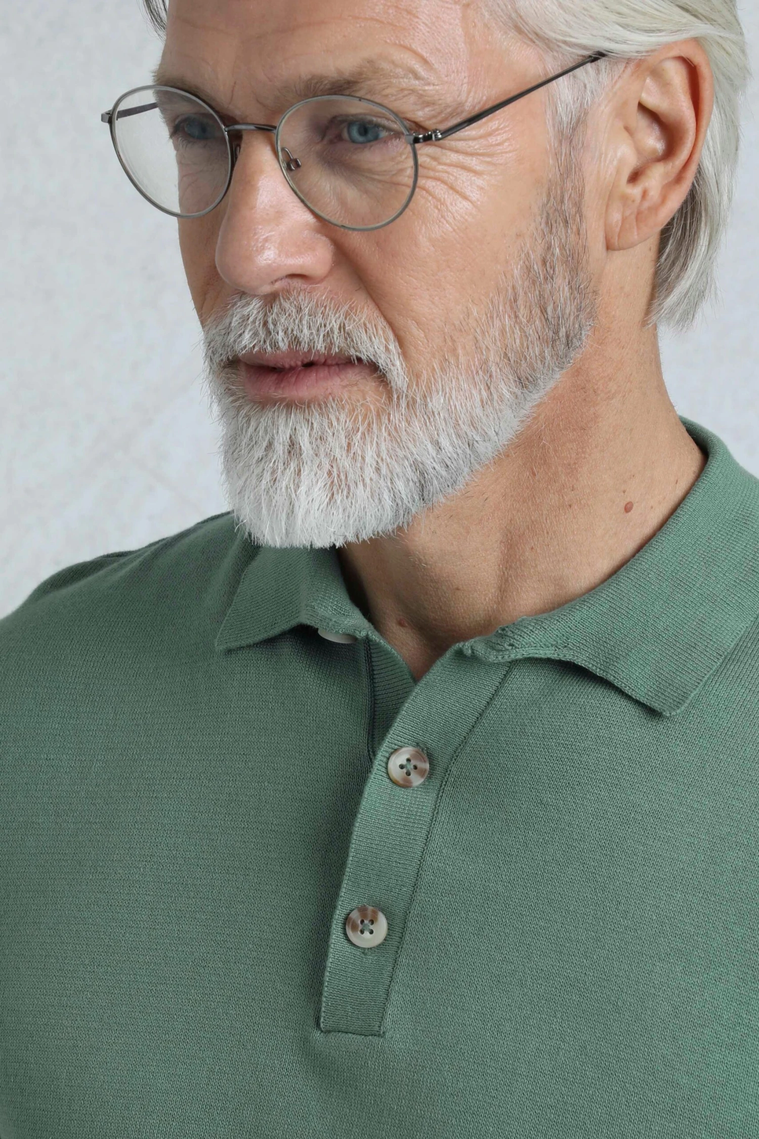 A new shape for us, the Quentin Short Sleeve Knitted Polo. The fine gauge knit gives a unique texture to this top, and we have added ribbed cuffs and hem for a more fitted shape. Looks great buttoned up or unbuttoned, and can even be layered over a plain T-Shirt.