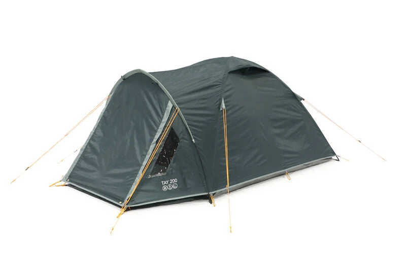 The Vango Tay 200 Tent is a dome style tent that maximizes interior space and has a compact pack size. Its Crystal Clear windows allow light into the porch, while the Gothic Arch pole increases stability and offers more headroom during inclement weather. This tent is perfect for beginner campers and music festival attendees.