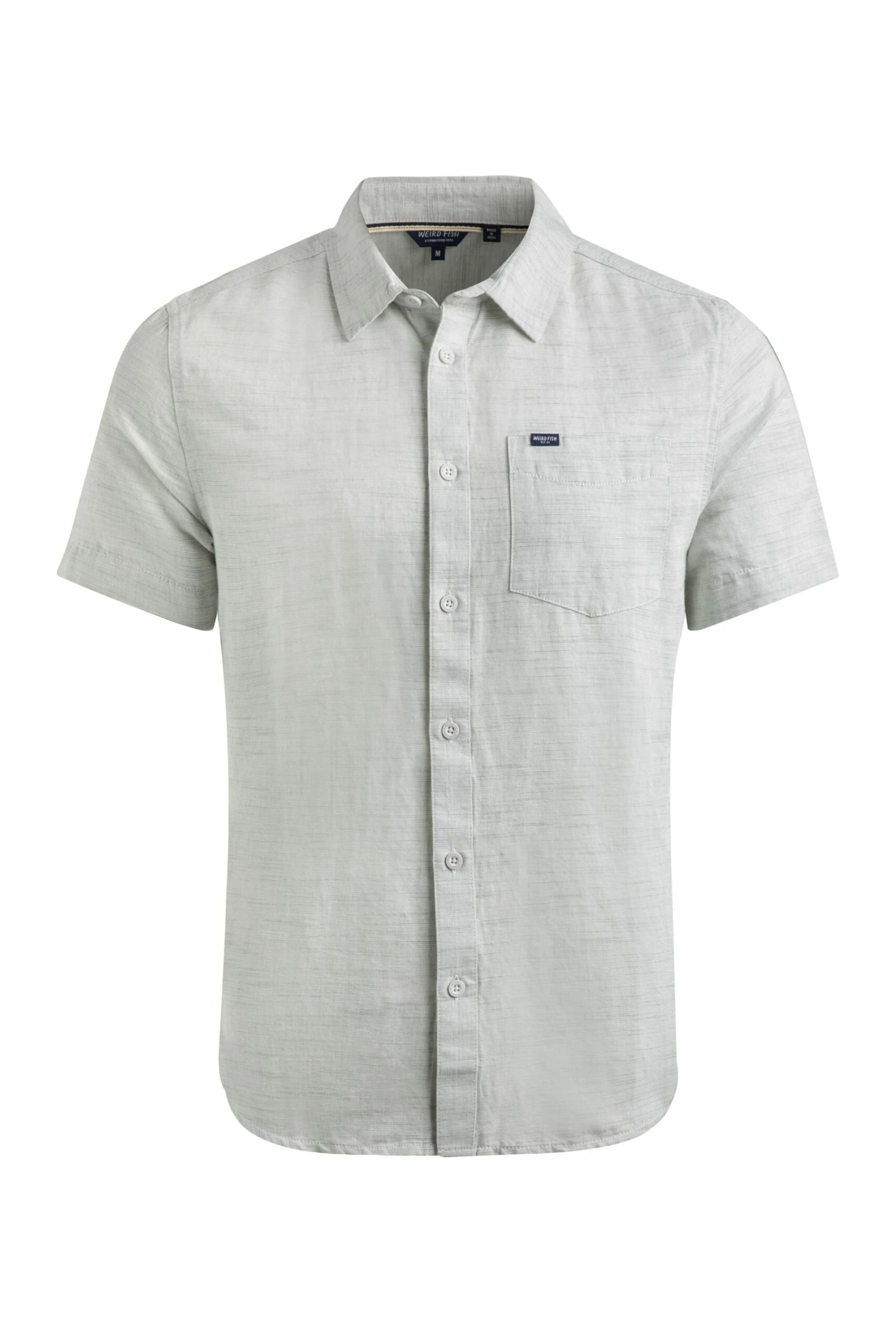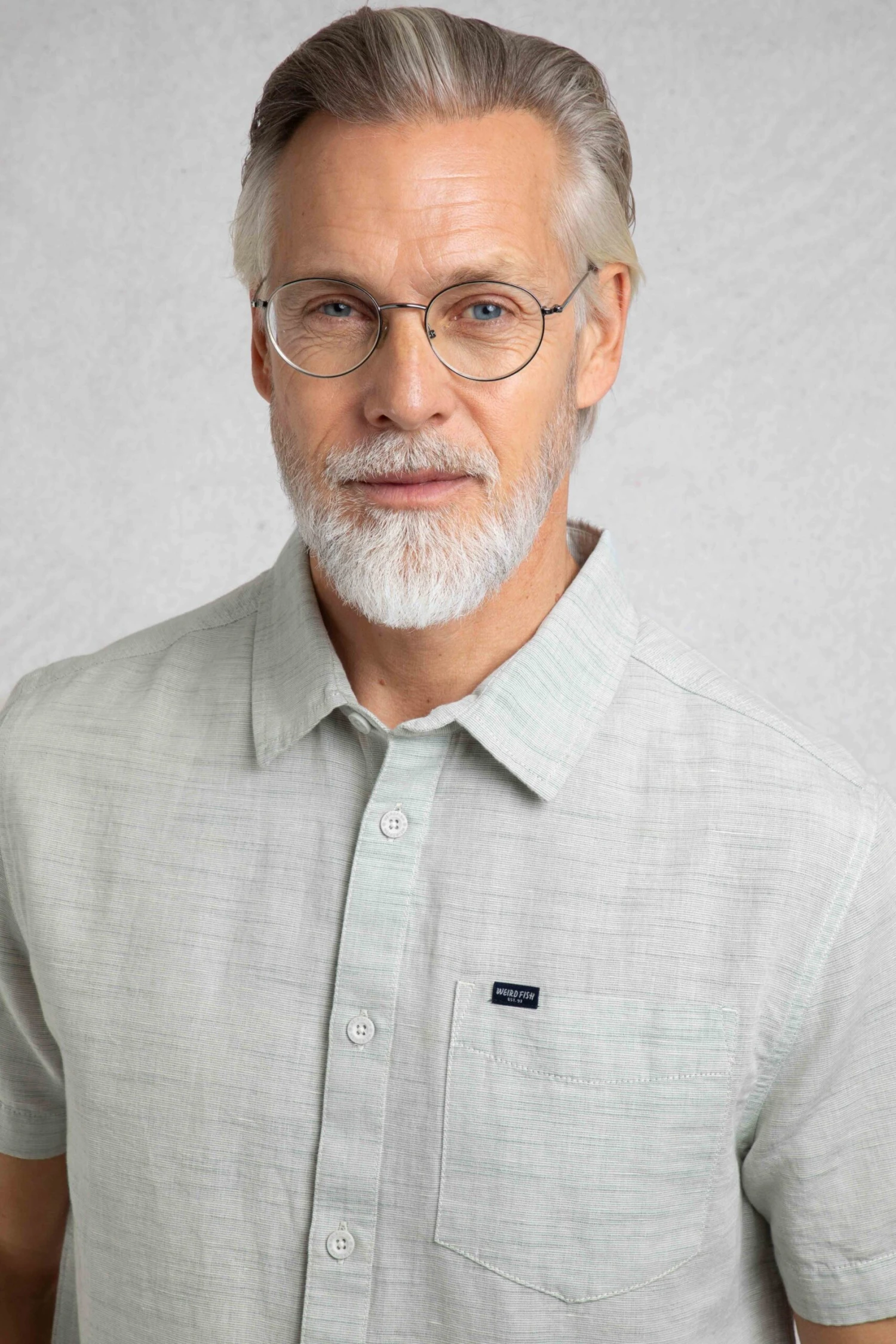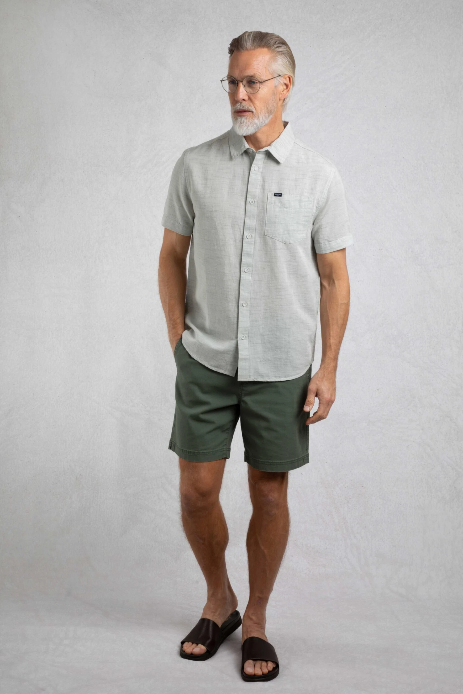 The Washton textured short sleeve shirt is a great Summer staple, the textured stripe running through the fabric gives a beachy, washed out look while still retaining a smart edge. The linen content makes this shirt cool and breathable but it doesn’t crease as easily as 100% linen. Finished with a chest pocket and fixed turn up cuffs.