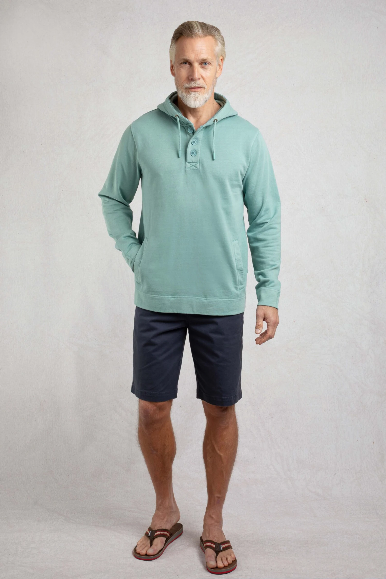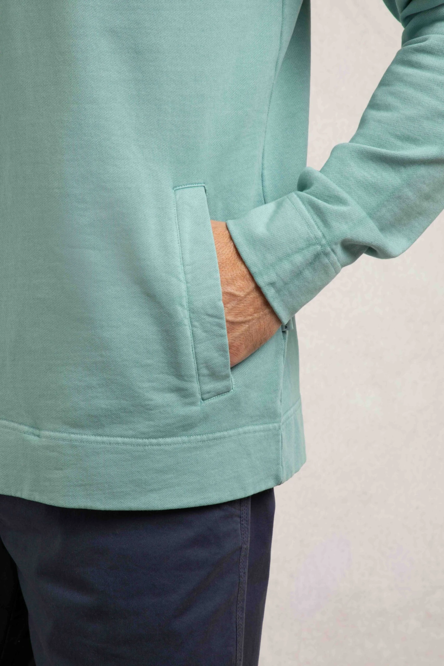 We loved the laid-back style of the Woodside Sun-washed Loopback Hoodie. We have given it a vintage wash for a pre-loved look and feel. Smooth on the outside, with a loopback textured inner, complete with good sized hand pockets and a hood with draw cords.