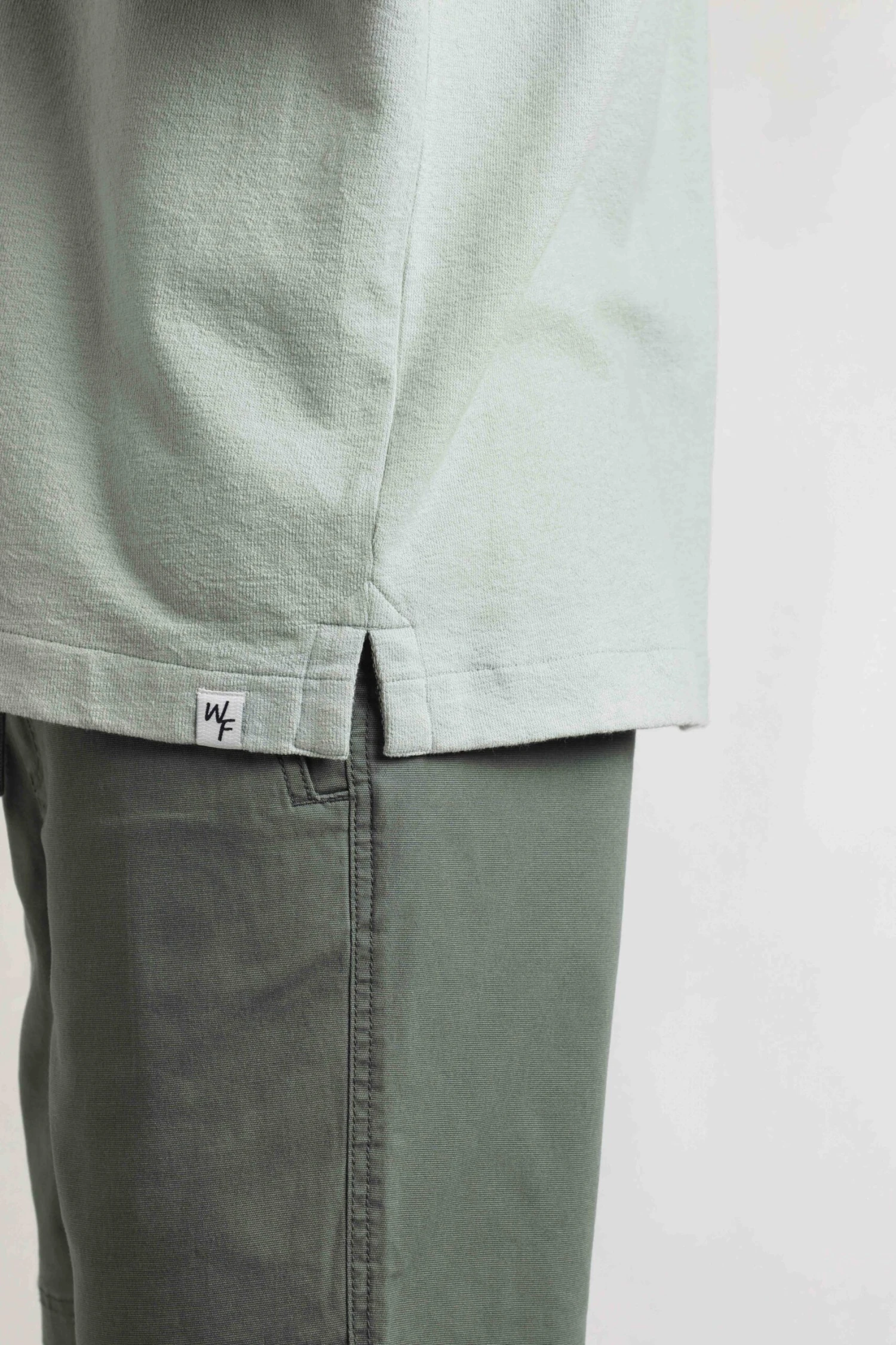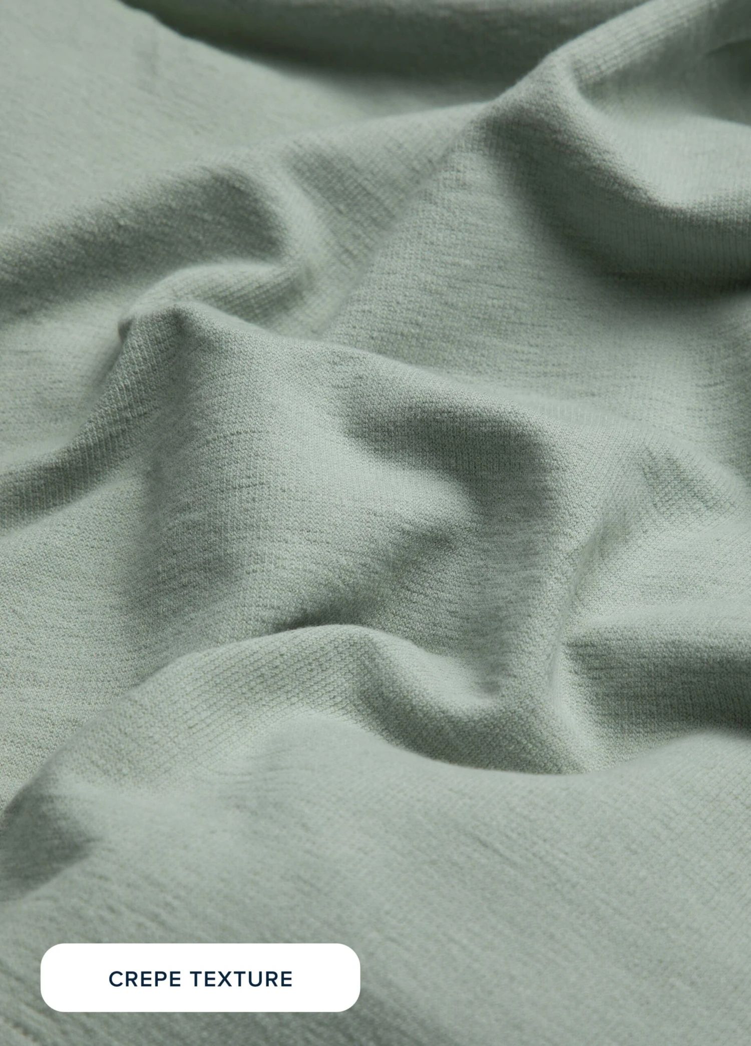 A new texture for us, the Wooster Crepe Knit Shirt is soft and drapes like jersey, but with a very fine knit texture. We have added a Cuban collar for a holiday feel, and finished it with metal buttons and chest pockets. This wearable colour teams well with plenty of options this season.